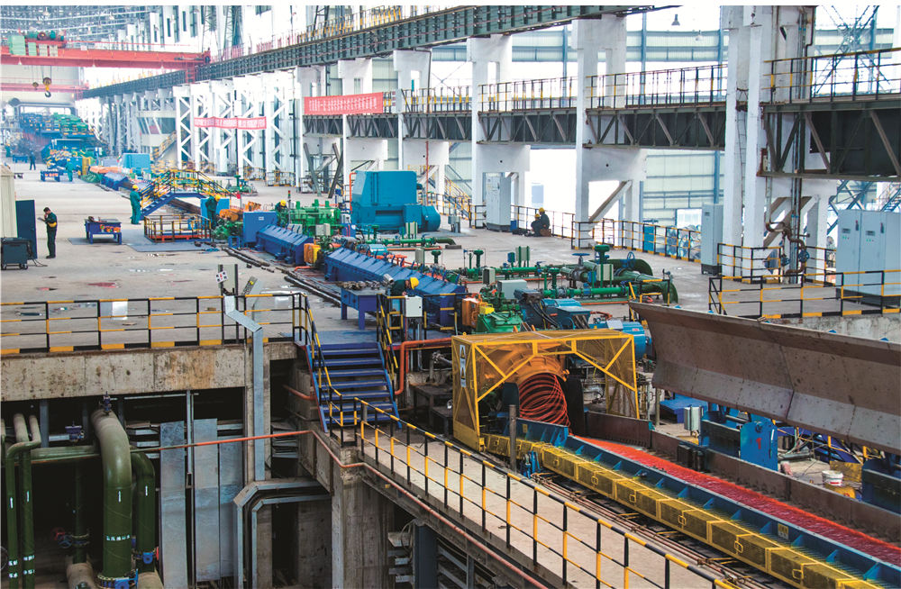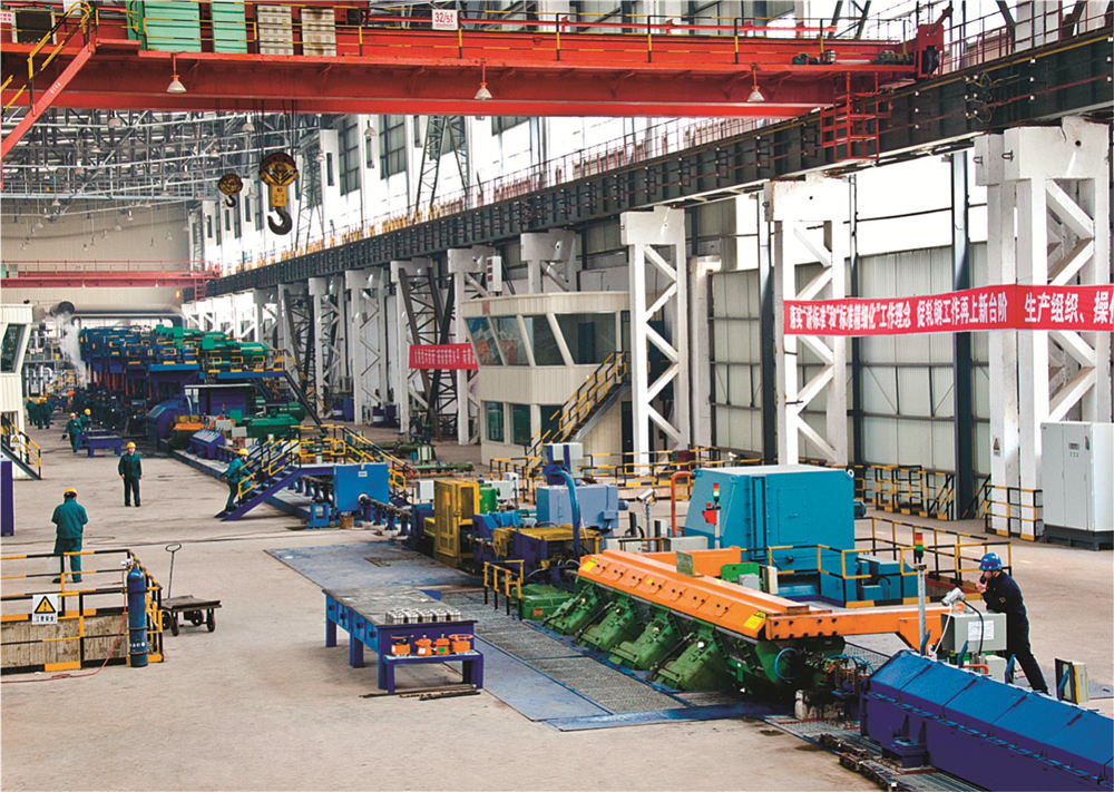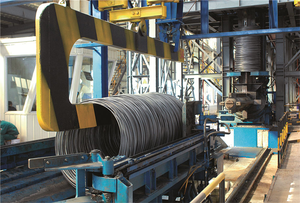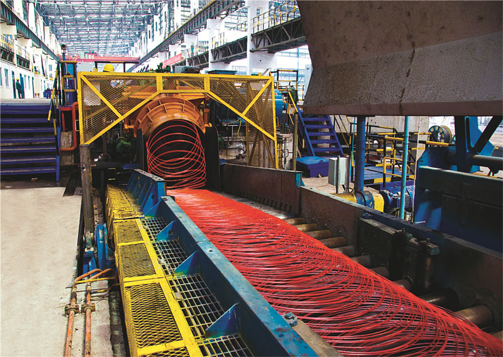 精品高线生产线年产能70万吨,关键技术和高速区核心工艺和设备由美国摩根公司设计和提供,全线自动化和传动系统由ABB公司负责设计和集成,使产品在质量、性能和成本等方面都具有很强的市场竞争能力。该生产线采用国际上先进适用的生产技术和装备,最大终轧保证速度为112m/s,采用热装热送工艺及世界上先进的精轧机“8+4”型式等,可实现热机轧制工艺技术、全线的数字化控制和在线测径技术、全线的控轧控冷技术、在线HotEye热眼影像式表面质量检测技术。生产的线材内部组织均匀,横断面上晶粒度差小于1级,通条性能均匀,氧化铁皮少。产品规格:ø5mm~ø25mm,主要产品为轴承钢、弹簧钢、冷镦钢、帘线钢、易切削钢等。应用于轴承、汽车、风力发电、桥梁建筑等领域,是一条具有国内一流、国际领先水平的高速线材生产线。